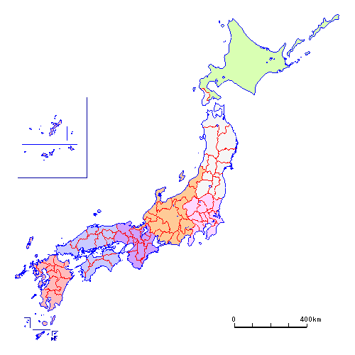 中国: | 鳥取県・島根県・浜田県・北条県・岡山県・深津県・広島県・山口県 | |