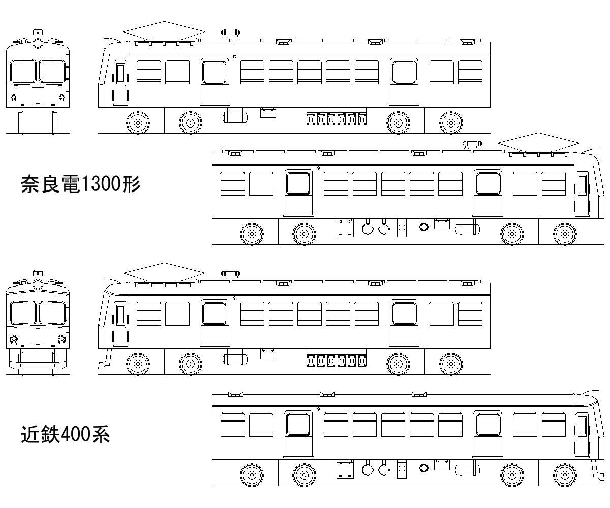 奈良電デハボ1300形、近鉄400系電車(1/80 16.5mmゲージ金属キット)