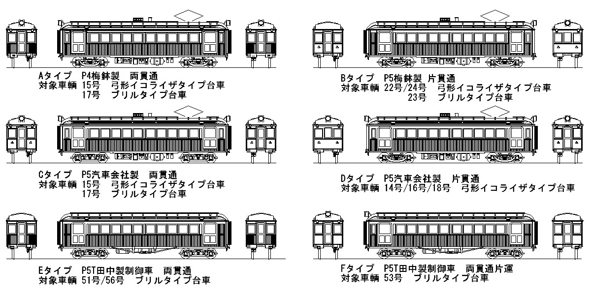 対象車輌 15号:弓形イコライザタイプ台車 17号:ブリルタイプ台車