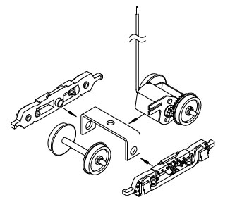 ステップ1:市販台車の1軸を、本製品と交換します。ホイルベースは、24.5から31mm まで対応しています。