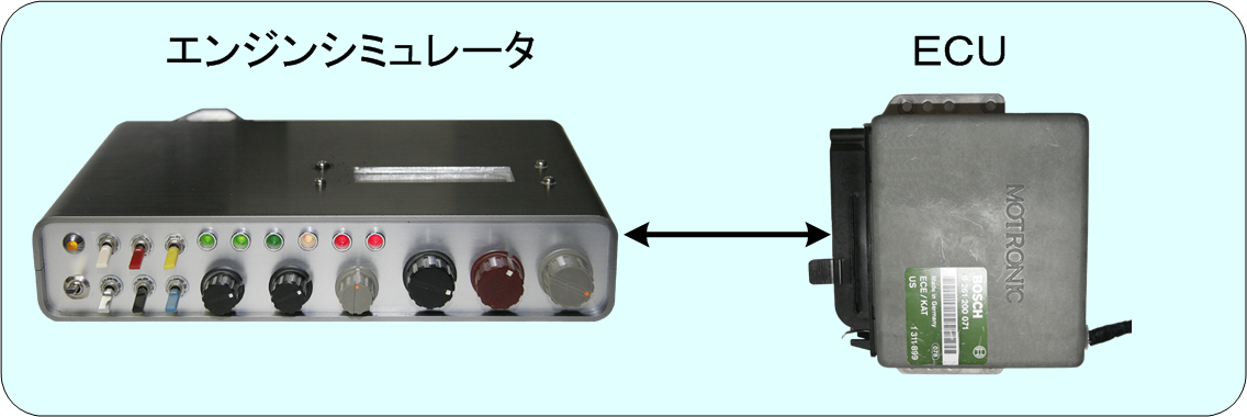 当該ECUをエンジンシミュレータと接続して、動作状態をエンジンシミュレータのLEDで確認した。
