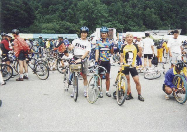 今年はコース途中が霧雨状態のウエットコンディション。さすがに例年の様に下りをかっ飛ばす馬鹿たれはおらず、みんな慎重なダウンヒル。しかし、