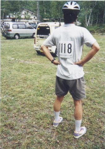 レースの記念にゼッケンを付けた後ろ姿で記念撮影。